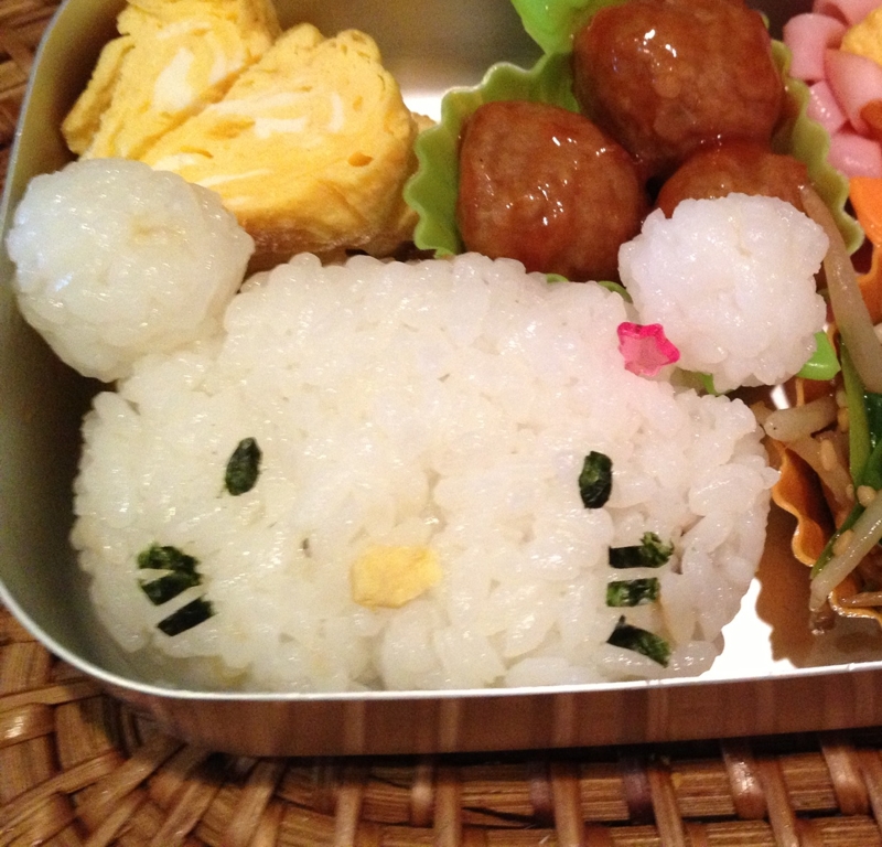 キティちゃんのおにぎり型 お弁当箱で Wキティ弁当 かわいいおべんとう